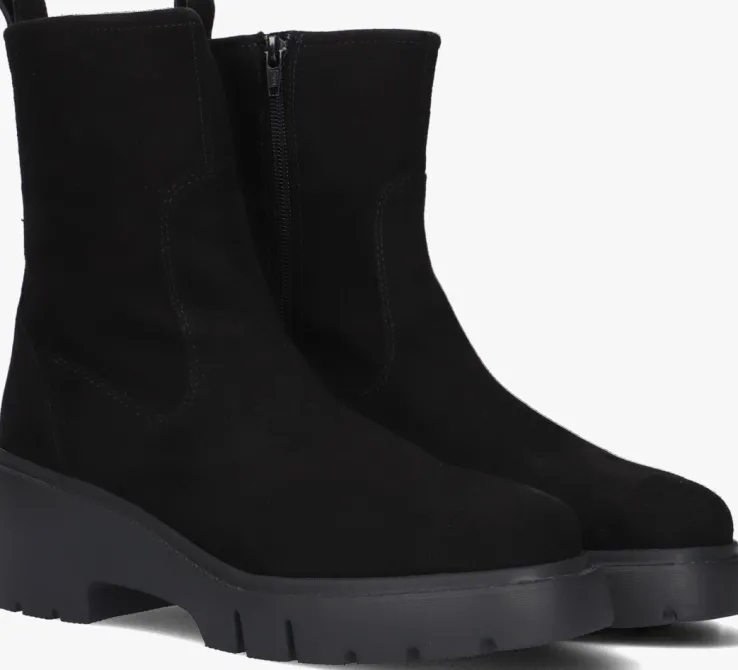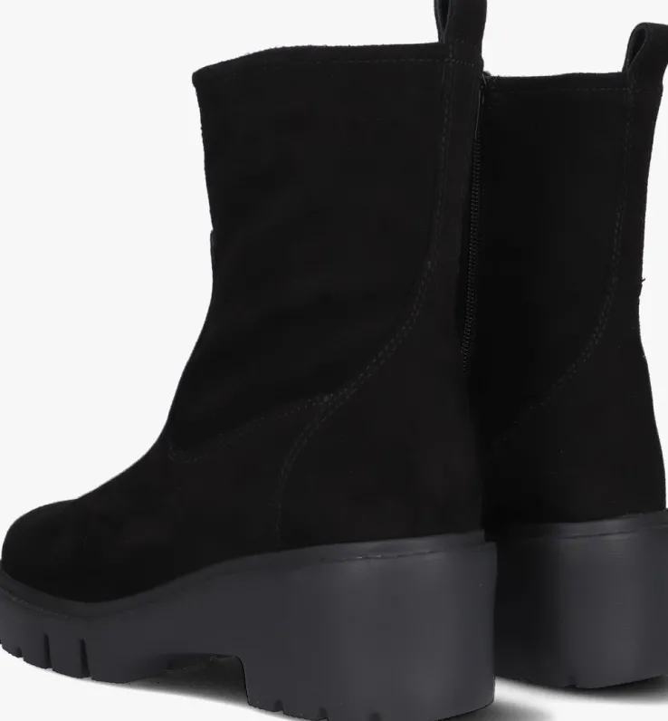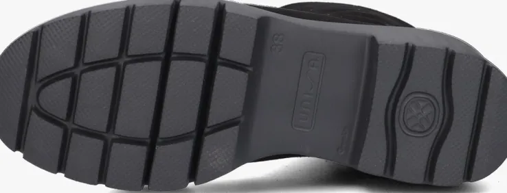 Een super stoere enkellaars met een prettig comfort en een opvallend design, dat is deze JOFO schoen vanhet merk UNISA! Dit zwarte model maaktjouwoutfit helemaal af en heeft mooie kenmerken die jouw stoere kant extra benadrukken zoals de oversized zool met diepe groeven, de aantreklus op de schacht en de verschillende panelen die met dubbele stiksels stevig vast zitten. Dit model isuitgevoerd in hoogwaardig suède met een binnenvoering van fluweel zacht textiel in combinatie met leer. Het dempende voetbed in combinatie met de extra verstevigende leren panelen geeft jouw voeten veel comfort en ondersteuning, tevens is het voetbed niet uitneembaar. De blokhak is 6 centimeterhoog, maar door de dikke plateau onder de voorvoet van bijna 3centimeter loopt deze laarstoch erg comfortabel. Dankzij de ritssluiting aan de zijkant trek je het laarsje eenvoudig aan en uit en door de rubberen loopzool met grof profiel heb je een goede grip bij iedere stap. De schachthoogte is 18 centimeter. Combineer ‘m bij een korte jurk of een fijne broek!