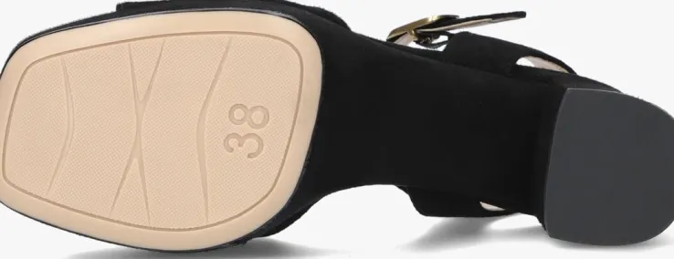 Ga voor een elegante retro look met deze zwarte sandaal NEY met plateau, blokhak en vierkante neus van het merk UNISA! Dit unieke model van suède heeft een brede band op de voorvoet en een sierlijk enkelbandje met handige goudkleurige gespsluiting. Alle bandjes zijn gevoerd met soepel leer en het voetbed is van suède met een leren toplaag met licht dempende werking voor een comfortabel gevoel. Mooi detail is dat het plateau en de blokhak bekleed zijn met hetzelfde suède, waardoor de sandaal een sophisticated uitstraling heeft onder jouw outfit. De rubberen loopzool en haktip zorgen voor een goede grip. Het plateau onder de voorvoet is 3 centimeter dik en de hak heeft een hoogte van 7 centimeter. Combineer ‘m bij jouw mooiste outfit en steel de show!