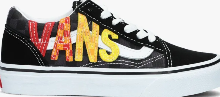 Deze populaire lage sneakerUY OLD SKOOL is één van de bekendste modellen van het merk Vans. Deze zwarte skateschoen is uitgevoerd in suède en canvas en heeft een voering van textiel met een vast voetbed. Opvallende details zijn de bekende leren lijnen op de zijkant, het merklabel op de hiel en het oversized merkembleem van leer in opvallende rode, oranje en een gele kleur. De neus is verstevigd met een stootrand en geeft beschermingtegen slijtage. De gevoerde enkelkraag biedt ondersteuning en flexibiliteit en de rubberen zool met wafelprofiel biedt grip bij het lopen.