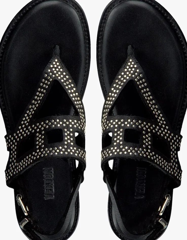 De eigenzinnige ontwerpen van het merkVERTON hebben een rauwe,urbanvibeen zijn er voor trendbewustecreatievelingendie ‘lessis more’ als stijlmotto hebben. Gemaakt van luxe materialen met stoere, opvallende accenten. Deze toffe sandaalS-10262isuitgevoerd in zwartleer, heefteen mooie decoratie bovenop de voet en is afgewerkt met kleine platte zilverkleurige studs. Dankzij het bandje om de hiel met gespsluiting trek je ‘m gemakkelijk aan en uit en blijft hij perfect om je voet zitten. Het binnenwerk van suède zorgt voor een fijn comfort en het voetbed is van leer en heeft een reliëf merkopdruk. De rubberen zool is flexibel en voorzien van een fijn profiel.