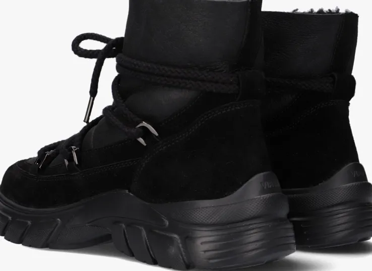 Het Nederlandse merk VIA VAI ontwerptcomfortabele schoenen van hoogwaardige materialen met Italiaanse allure. Deze lage enkelboot SUE KNIT is gemaakt van zwart leer en heeft een stoer en sportief uiterlijk.Deze schoen heeft zijn sportieve uiterlijke te danken aan de chunky sneaker zool en de grove veter, die over het gehele bovenwerk loopt, geeft hem die stoere hiking boot look. Andere opvallende details zijn de donkere metalen veterringen, het merkreliëf achter op de zoolrand en het subtiele V’tje op de neus. Dit model is gevoerd met zacht teddy textiel met een uitneembaar voetbed waardoor hij supercomfortabel zit. De rubberen zool is licht van gewicht en heeft een matte afwerkingen een grof profiel in de loopzool. De zool is 2,5centimeter dik onder de voorvoet en de hak is 4centimeter hoog. Schachthoogte is 13centimeter, gemeten bij maat 37.Maatadvies: dit model heeft een ruime pasvorm. Twijfel je tussen twee maten? Ga dan voor de kleinste maat.