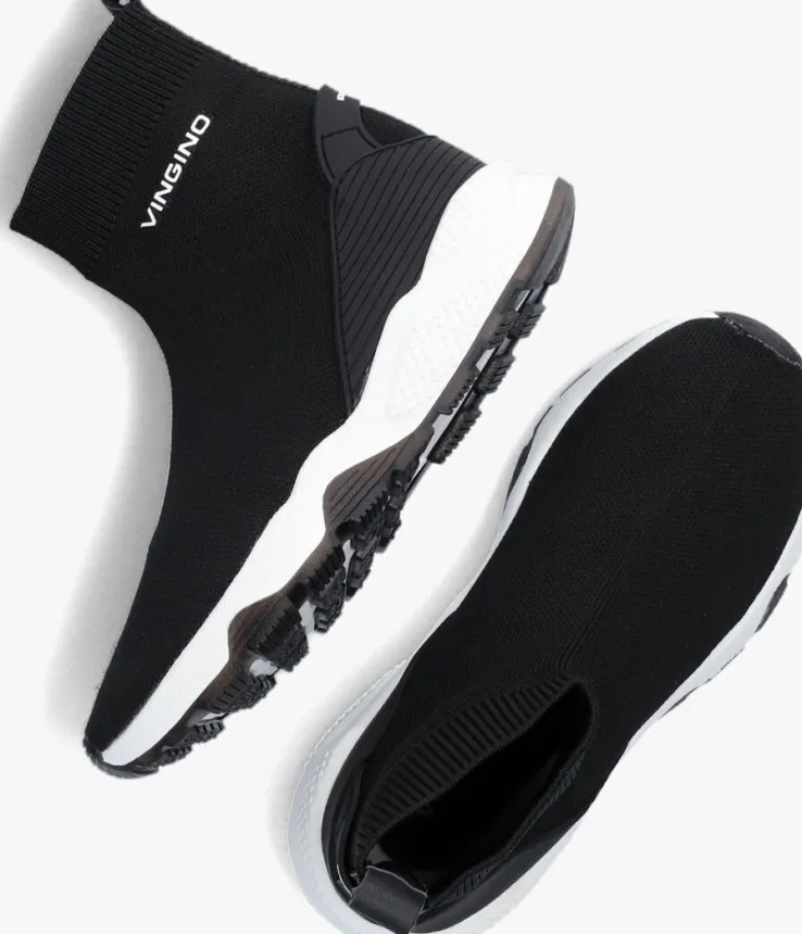 Voor stoere jongens heeft Vingino deze gave, hoge sneaker GINO ontworpen met sokdesign. Dit model is uitgevoerd in zwart textiel en heeft een rubberen accent met merkopdruk op de hiel. Opvallende details zijn de merkopdruk op de zijkant van de schacht en het lederlook aantreklusje. Het binnenwerk is gemaakt van textiel en de schoen heeft een dempend, uitneembaar voetbed. De witte zoolrand is afgewerkt met reliëf en het gripvaste profiel van de loopzool zorgt voor veel stabiliteit.