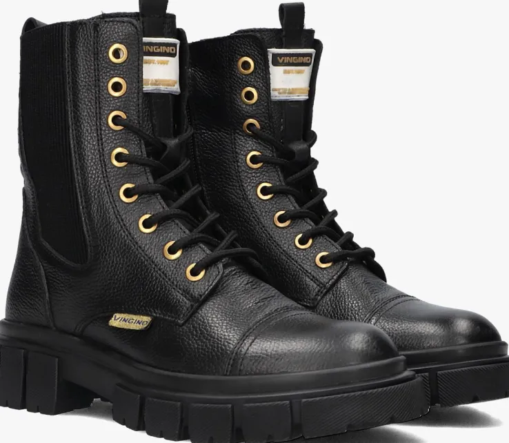 Maak kennis met de stoere SIENNA veterboots van VINGINO. Deze zwarte boots zijn perfect voor avontuurlijke meisjes die houden van een robuuste look. De laars heeft goudkleurige details, zoals de veterringen en textiele merkembleem. Trek ze aan met de rits voor een dagje in het park of een middagje shoppen met vriendinnen. De stevige veters en comfortabele pasvorm zorgen ervoor dat je de hele dag door kunt gaan zonder zorgen. Combineer de SIENNA boots met een trendy jeans en een oversized trui voor een casual outfit. Of draag ze onder een schattig jurkje met een leren jasje voor een edgy touch. Deze veterboots zijn een must-have voor elke garderobe!
