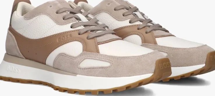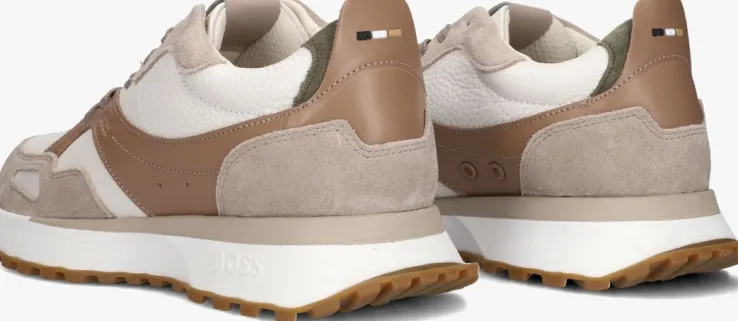 beige hub lage sneakers grid-w