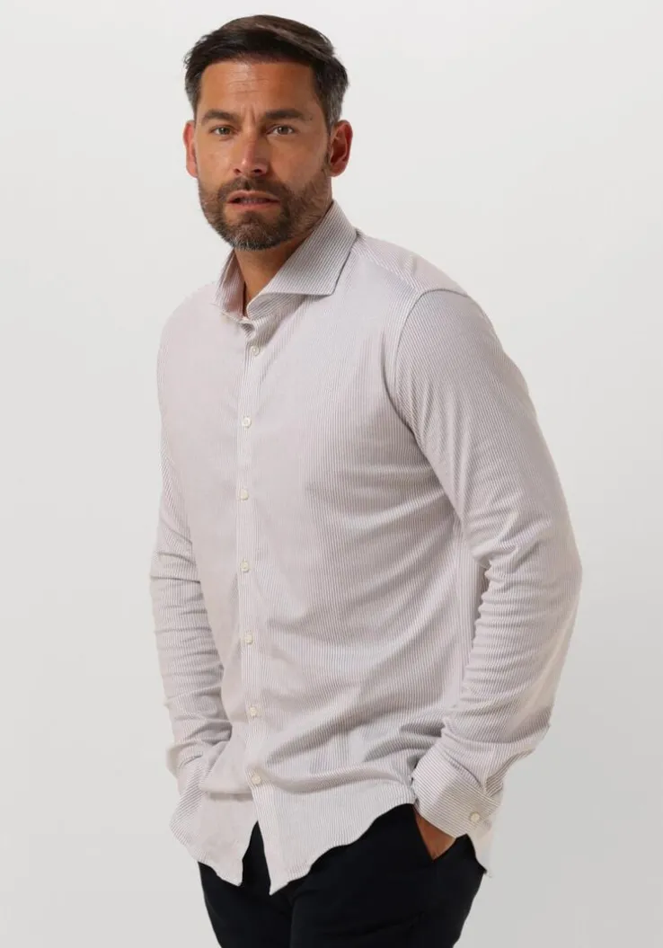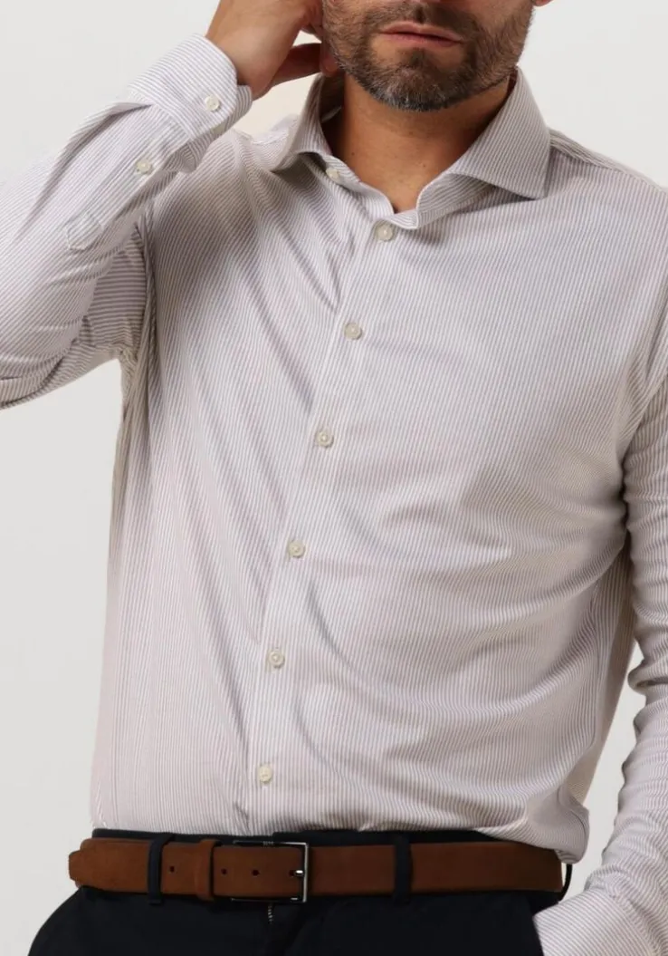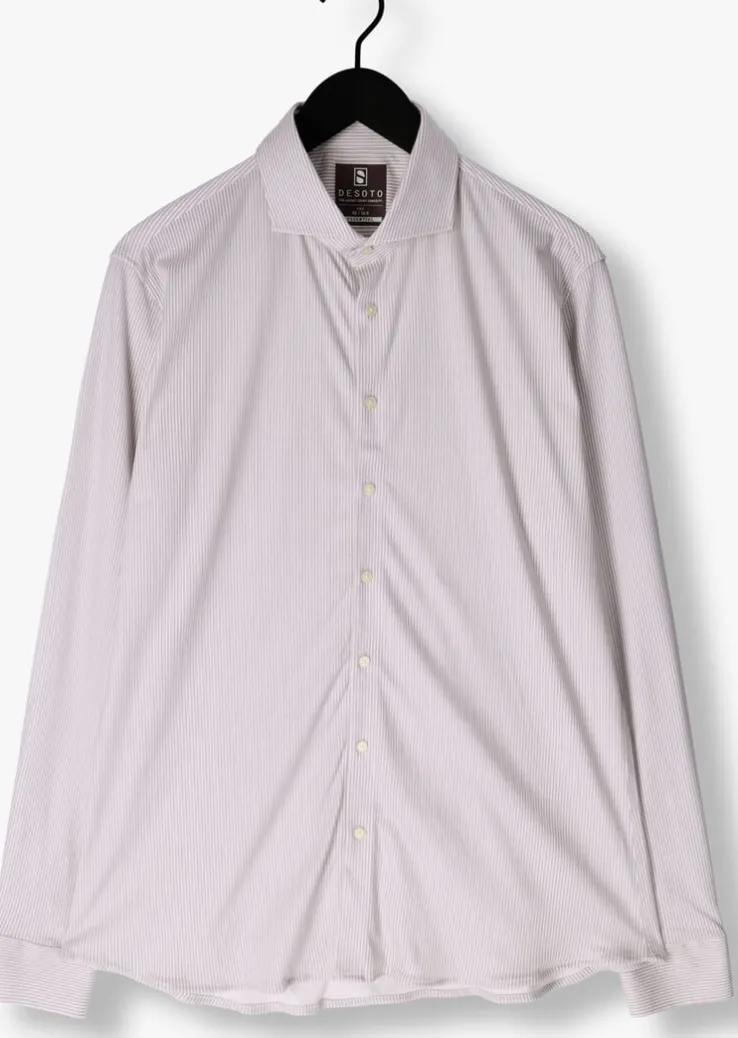 Stap stijlvol de dag in met deze beige klassieke overhemd met witte streep HAI 1/1 07-3 van DESOTO. Perfect voor heren die houden van een tijdloze look. Dit overhemd is ideaal voor een zakelijke meeting, dagje weg of een chique diner. Combineer het met een pantalon en nette schoenen voor een verfijnde uitstraling. Of draag het casual met een jeans en sneakers voor een ontspannen, maar toch verzorgde look. De kleur geeft een frisse touch aan je outfit, terwijl de klassieke snit zorgt voor een elegante fit. Een must-have voor elke stijlvolle garderobe.