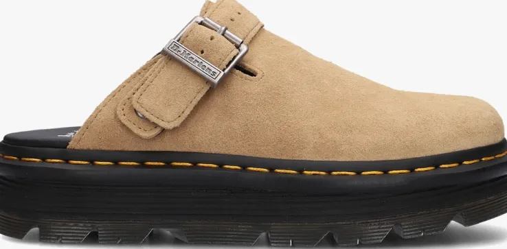 Stap in stijl met de ZEBZAG W muiltjes van het merk DR MARTENS. Deze beige muiltjes zijn gemaakt van suéde en zijnniet alleen heel stoer en opvallend maar ook erg comfi én hip! Hij heeft kenmerkende Dr. Martens accenten zoals de gegroefde zoolrand met het gele stikselen de wreefband met metalengesp is een tof detail waarmee je deze muiltjes ook net iets strakker of losser kunt dragen. De rubberen zool is olie- en vetbestendigen biedt een goede schuur- en slipweerstand. *Maatadvies: schoenen van Dr. Martens moeten eerst goed ingelopen worden, maar daarna wil jenooit meer zonder!