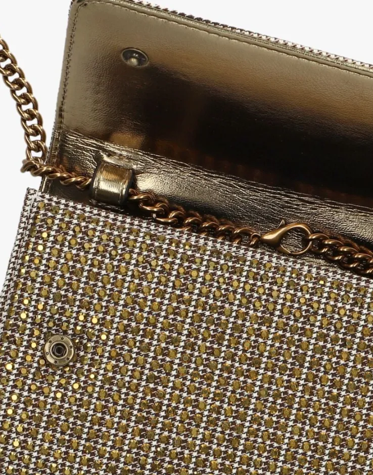 Met de Kensington Chain Wallet van Kurt Geiger London maak je een fashion statement. Deze schoudertas met pied-de-poule print is perfect voor dames die op zoek zijn naar stijl en functionaliteit. De tas is ook afgewerkt met strass-steentjes en de bekende adelaar. Onder de klep zitten twee drukknoppen en de voering is gemaakt van textiel. Ook bevind zich aan de binnenzijde een ritsvak. Je kunt ‘m zowel gebruiken als portemonnee, clutch en schoudertas dankzij de afneembare metalen schakelketting. Afmetingen: 20 x 3 x 12 cm (lengte x breedte x hoogte)