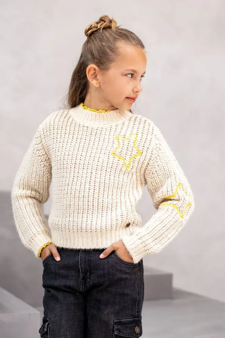 Laat je betoveren door de DONYA KNITTED SWEATER van LIKE FLO. Deze beige trui is perfect voor meisjes die houden van comfort en stijl. Draag ‘m tijdens een gezellige middag met vriendinnen of een ontspannen dag thuis. Combineer de trui met een stoere jeans of een schattig rokje voor een complete look. De zachte stof en het mooie breipatroon maken deze trui een echte must-have in je garderobe. Op de voorkant zijn 2 sterren gestikt en de metallic stof zorgt voor een extra touch. Voel je comfortabel en trendy, waar je ook bent.