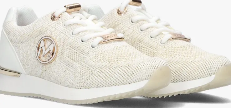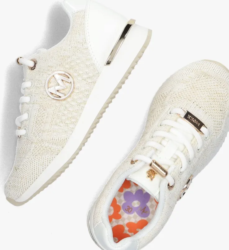 Het bekende fashionmerk Mexx heeft een mooie tijdloze en kwalitatieve schoenencollectie, geïnspireerd op het geroezemoes en de energie van de stad. Comfortabele items om iedere look eenstylishfinishingtouchte geven! Deze beige sneaker GITTE GLITTER MINI is niet alleen heel mooi, maar ook heel trendy door het gebreide bovenwerk met luxe details. De sneaker is uitgevoerd in geweven textiel en heeft een lederlook tong en een leatherlook hielcap.De meerdere goudkleurige merkemblemen en de metalen hielinzet zorgen samen met de glitters in de stof en de slanke vormgeving voor een luxe uitstraling. Het binnenwerk is gevoerd mettextiel en dewitte oplopende zool met flexibel en lichtgewicht karakter heeft een golvend gripvastprofiel in de loopzool.