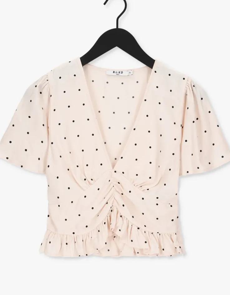 beige na-kd top front rouching frill top