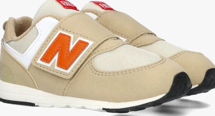 Sportievelage sneaker NW574 van het merk New Balance. De schoen is gemaakt van beige suèdelook in combinatie metmeshen heefteen binnenvoering van textiel en een uitneembaar voetbed. Opvallend zijn de merkopdrukken op detong, hiel en beide zijkanten. De zool en hielstabilisator zijn gemaakt van rubber en gripvast profiel. De rubberen zool met zwarte loopvlakken zorgen voor een uitstekende grip. Je trekt ze super gemakkelijk aan en uit dankzij de klittenbandsluiting in combinatie met de aantreklus! Dit schoentje maakt elke outfit tof!