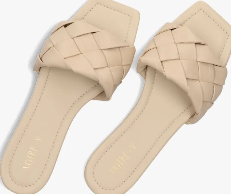 Een opvallende en elegante slipper is deze zomer onmisbaar in je schoenenkast! Dit beige model 7135 is van het merk NOTRE-V en maakt al jouw outfits helemaal af! Deze slipper is gemaakt van hoogwaardig en gevlochten leer met een binnenwerk van leer en een dempende schuimlaag in het voetbed. Het lage hakje van 2 centimeter hoog en de vierkante neus maken dit uniekeplaatje compleet. Combineer ze opvallend en tegelijkertijd supervrouwelijk met jouw lievelingsjurk of -broek!