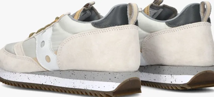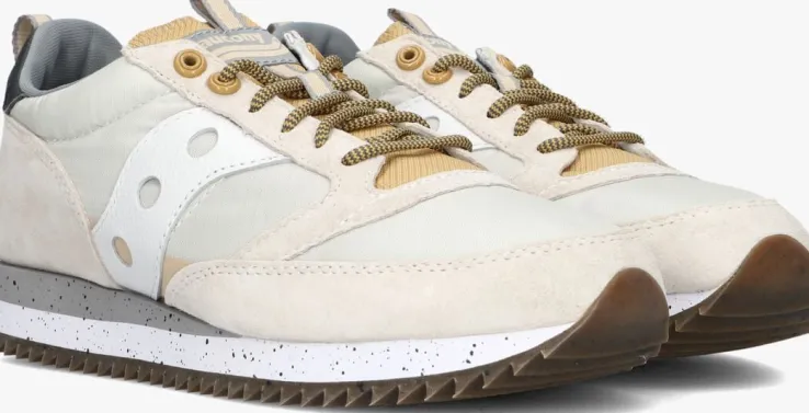 Het begon allemaal in 1898 aan de Saucony Creek in Kutztown, Pennsylvania waar vier jonge zakenmannen de Saucony Shoe Manufacturing Company openden.Het Amerikaanse merk Saucony is van origine een hardloopschoenenmerk en produceert nu comfortabele sneakers met een knipoog naar hunerfgoed en in typische stijlen en modellen. Oude modellen met iconische ontwerpen krijgen nieuwe updates,zoals deze beige JAZZ 81 met toffe accenten. Deze sneaker is langdurig getest op comfort, heeft een superieure schokdemping en een uitstekendepasvorm. Hij is uitgevoerd in suède met panelen van sterk nylon en geweven textiel en heeft een duurzaam karakter. De gewatteerde enkelrand voeltzacht en comfortabel aan en het binnenwerk van textiel heeft een ademende werking. Het uitneembare voetbed en de EVA-tussenzool zijn uitstekende schokdempers en deduurzame en slijtvaste rubberen loopzool met het driehoekige profielontwerp biedt een perfecte grip. Dus of je nu een rondje wil gaan joggen of lekker actief de stad wil verkennen, dit is je nieuwe favoriete sneaker!