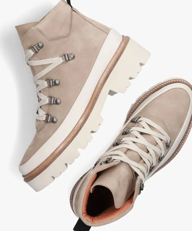 Deze comfortabele veterboot BEE BOLD 57 van Tango maakt jouw herfst- en winterlook compleet!Dit model is uitgevoerd in beige nubuck en heeft een off white, leren rand rondom de schoen. Een leuk detail is ook de houtlook zoolrand die afgewerkt is met een wit stiksel. Het binnenwerk is gemaakt van leer en de enkelkraag is gevoerd voor extra comfort. Daarnaast is het voetbed uitneembaar en heeft de loopzool een grof profiel voor voldoende grip. De zool onder de voorvoet is zo’n 3 centimeter dik en de hakhoogte is 5 centimeter. De schachthoogte is 11 centimeter. Een fijne én trendy schoen die je aan jouw schoenencollectie wil toevoegen!