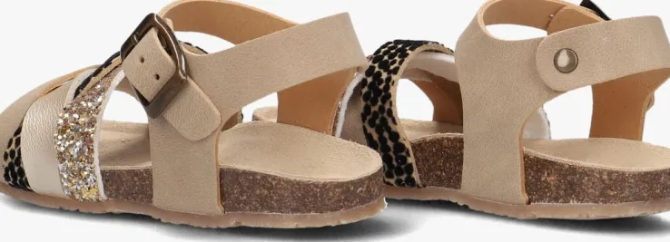 Met de THYRA sandalen van TON & TON ben jij helemaal klaar voor de zomer! Deze sandalen zijn perfect voor meiden die houden van een vrolijke en trendy look. Met zijn gevlochten bovenwerk van gouden glitter, zwart stippen, bruin nubuck en goudkleurig leer. Trek ze gemakkelijk aan met het bandje met gespsluiting en verstel ze naar jou maat. Draag ze naar het strand voor een relaxte dag in de zon of naar een zomerfestival voor een fashionable touch. Door zijn zachte suède voetbed en zijn bloemen print loopzool zijn ze comfortabel en grip vast. Ben je klaar om te shine!