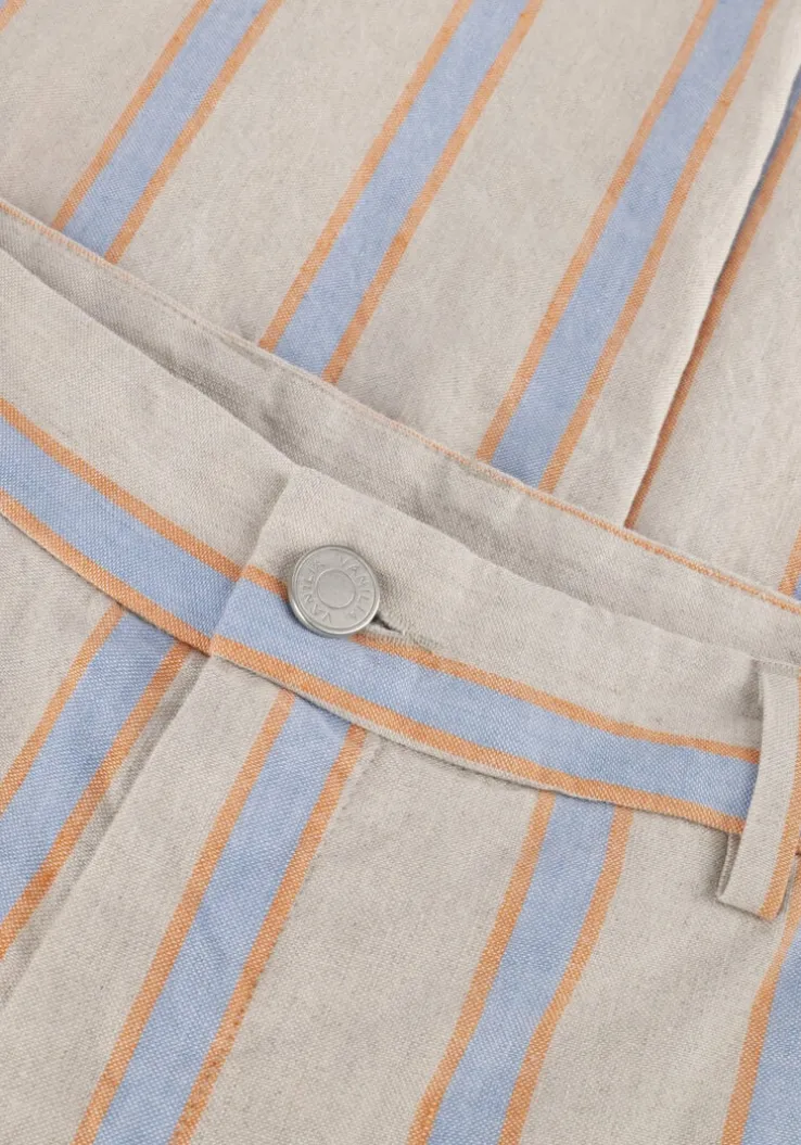 Ga voor een stijlvolle look met de LINEN STRIPED pantalon van VANILIA. Deze beige broek is perfect voor een casual-chique outfit. Combineer hem met een witte blouse voor een elegante uitstraling of draag hem met een basic T-shirt voor een meer relaxte look. Of je nu naar kantoor gaat of een dagje gaat shoppen, met deze pantalon zie je er altijd fashionable uit. De lichte stof zorgt ervoor dat je de hele dag comfortabel blijft. Maak je outfit compleet met een paar mooie sneakers of hakken.