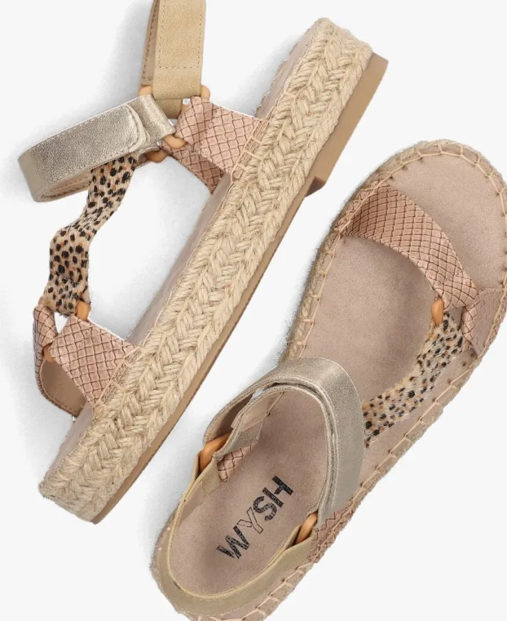 Stap in stijl met de CANDICE sandalen van WYSH. Deze beige sandalen met een ronde neus en plateauzool zijn perfect voor meisjes die op zoek zijn naar comfort en fashion in één. Het bovenwerk bestaat uit ponyhair, crocoprint en metallic goud. Het klittenband zorgt voor een makkelijke sluiting en de rubberen en jute zool geven een trendy touch aan je outfit. Combineer de CANDICE sandalen met een zomerse jurk of een stoere jeans voor een casual-chique look. Of draag ze onder een rokje voor een speelse twist. Met deze sandalen ben je klaar voor elke zomerse dag!