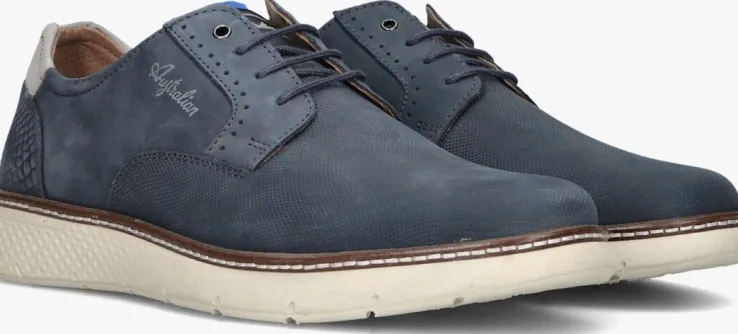 Stap stijlvol de deur uit met de blauwe veterschoenen POZZATO van het merk AUSTRALIAN. Gemaakt van nubuck, zijn deze schoenen perfect voor heren die op zoek zijn naar comfort en klasse. De schoen heeft op de wreef stippen en hiel een ruit patroon, voor een speelse touch. Leuke details zijn de lichtgrijze hielkap, perforaties, dubbele stiksels en de merkemblemen. De binnenkant is gemaakt van leer en is comfortabel en ademend, heeft een uitneembaar voetbed. Zijn crèmekleurige rubberen zool is gripvast en geeft een fijne ondersteuning aan de voet. Combineer ze met een nette broek en een casual overhemd voor een trendy look op kantoor. Of draag ze met een spijkerbroek en een T-shirt voor een relaxte weekendoutfit. Met de POZZATO veterschoenen ben je altijd goed gekleed, waar je ook naartoe gaat.