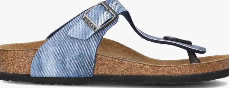 Deze blauweGIZEH KIDS slipper met denimlook is de populaireklassieker van het merk Birkenstock en is speciaal aan kindervoeten aangepast. Deze outdoor slipper is een onmisbaar fashionitem. De banden zijn gemaakt van hoogwaardig materiaalmet een extra beschermlaag zodat deze super sterk en slijtvast zijn. Daarnaast hebben de banden eentextiel binnenwerk wat zorgt voor een fijn gevoel.Het voetbed is van anatomisch gevormd kurk-latex met een suède afwerking en zorgt voor een hoogdraagcomfort omdat het zich bij het dragen naar de voet gaat vormen. De gespheeft een merkopdruk en is verstelbaar voor iedere voet. De rubberen zool heeft een grof profiel met merkopdrukken voor een goede grip.