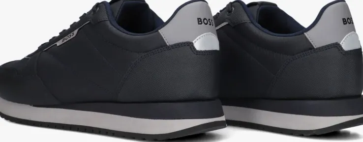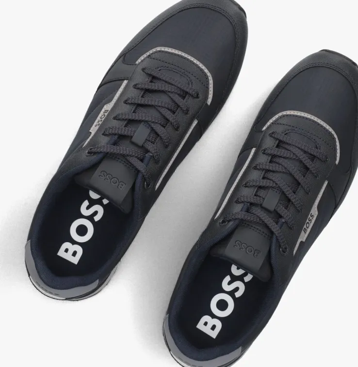 Deze lage sneaker KAI RUNN van BOSS is gemaakt van donkerblauw nylon met overlays heeft een neus en tong van geweven textiel. Opvallend zijn de strepen op de zijkant, het merklabel op de tong, de hielcap met merkembleem en de veterringen. De sneaker is textiel gevoerd en je ervaart nog meer comfort dankzij de gewatteerde enkelkraag. De oplopende zool is licht van gewicht en de zwarte loopzool heeft een gripvast profiel. Combineer dit model bij talloze outfits!