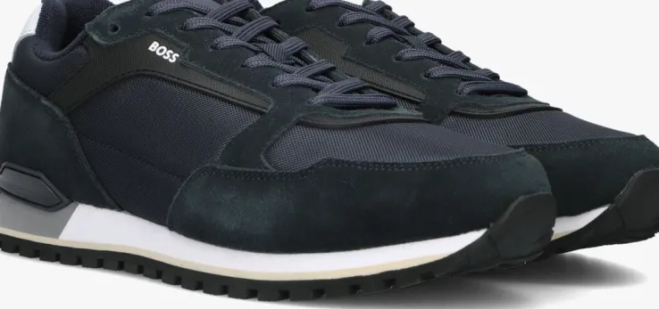 Stap stijlvol de dag in met de PARKOUR-L_RUNN lage sneakers van BOSS. Deze blauwe sneakers zijn perfect voor heren die houden van een sportieve en toch elegante look. Het bovenwerk bestaat uit textiel met panelen van blauw suède en zwart rubber. Ideaal voor een casual dagje uit of een ontspannen wandeling door de stad. Combineer ze moeiteloos met een strakke jeans of een comfortabele chino voor een moderne uitstraling. De hoogwaardige materialen en het verfijnde design zorgen voor een perfecte mix van comfort en stijl. Met deze sneakers aan je voeten ben je altijd klaar voor een nieuwe uitdaging.
