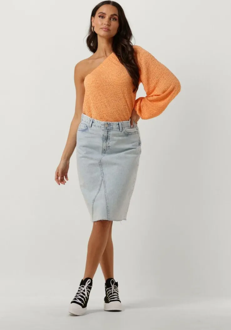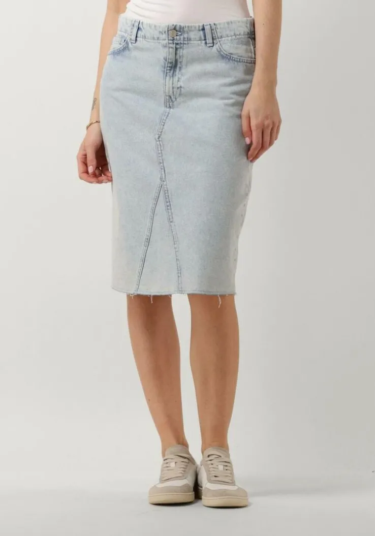 Ga voor een frisse en stijlvolle look met de ENDANK midirok van ENVII. Gemaakt van biologisch katoen in een prachtige blauwe kleur, is deze rok perfect voor elke gelegenheid. Combineer het met een witte blouse voor een chique uitstraling of draag het met een casual T-shirt voor een meer relaxte look. Of je nu naar kantoor gaat of een dagje uit met vriendinnen, met deze rok zie je er altijd fashionable uit. Laat je creativiteit de vrije loop en creëer jouw eigen unieke stijl met deze must-have rok.