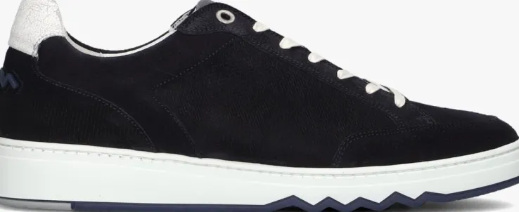 Deze lage sneaker SFM-10183 van FLORIS VAN BOMMEL is een super tof exemplaar en kan je dragen naar elke gelegenheid! Dit model bestaat uit donkerblauw suède en het bovenwerk heeft toffe details, zoals het fraaie stikwerk, de metalen veterringen, de platte veters, de leren hielcap, het zigzagpatroon op de hiel en het textielen merklabel op de tong. De voering bestaat uit leer, het voetbed is uitneembaar en de gewatteerde enkelkraag biedt een fijn comfort. De rubberen zool loopt op tot een hoogte van 3,5 centimeter en het donkerblauwe rubberen onder de voorvoet is afgewerkt met een gekartelde rand, wat dit model net wat stoerder maakt!