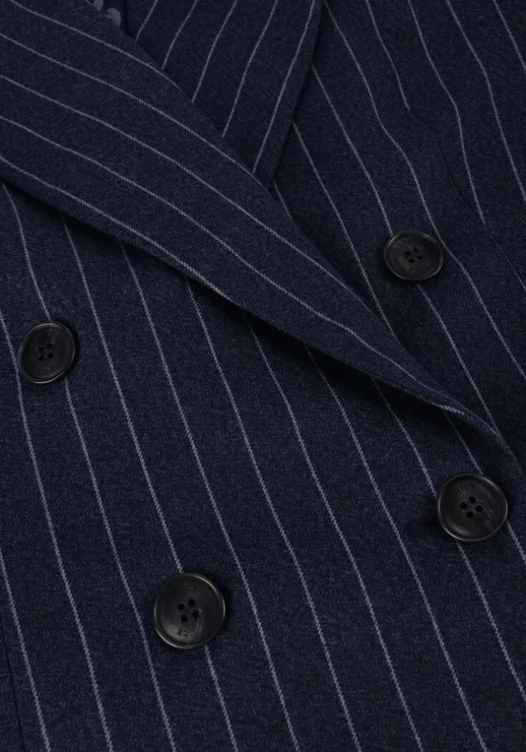Maak kennis met de STAN blazer van JANICE, een stijlvolle toevoeging aan je garderobe. Deze blauwe blazer met lichtblauwe streep en toffe knoop, is perfect voor zowel een zakelijke meeting als een casual lunch met vriendinnen. Combineer met een witte blouse en een zwarte pantalon voor een chique look, of draag over een lichte jeans voor een meer ontspannen uitstraling. De STAN blazer biedt een perfecte mix van comfort en elegantie, waardoor je altijd goed voor de dag komt. Voeg deze veelzijdige blazer toe aan je collectie en geniet van de vele combinatiemogelijkheden.