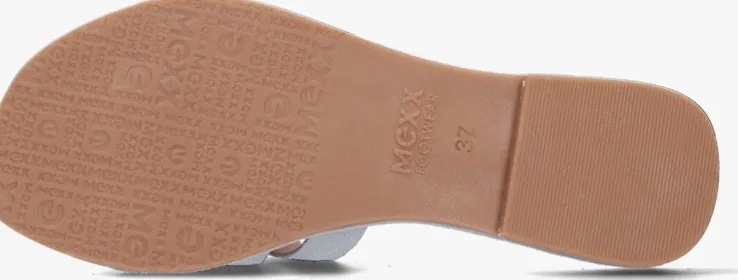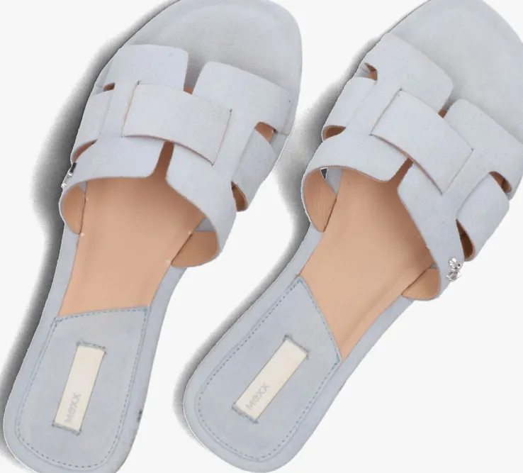 Ga voor comfortabele elegantie! Die twee kenmerken zijn namelijk uitstekend gecombineerd in deze leuke lichtblauwe slipper JACEY uit de collectie van het merk MEXX. Het brede bandje heeft speelse uitsnijdingen in het bovenwerk waar een ander smaller bandje doorheen loopt om zo een trendy geheel te vormen. Verder heeft de slipper een afgeronde carré neus en een zilverkleurig merkembleem op de zijkant die hem helemaal afmaakt! Het binnenwerk is gemaakt zacht en soepel leer met een gewatteerd voetbed die demping biedt bij iedere stap. De flexibele rubberen zool met merkopdrukkenprofiel is voorzien van een laag hakje van bijna 1,5 centimeter dik voor een vrouwelijke touch. Trek ze aan onder je zwierige lange jurk voor een superfashionable look.