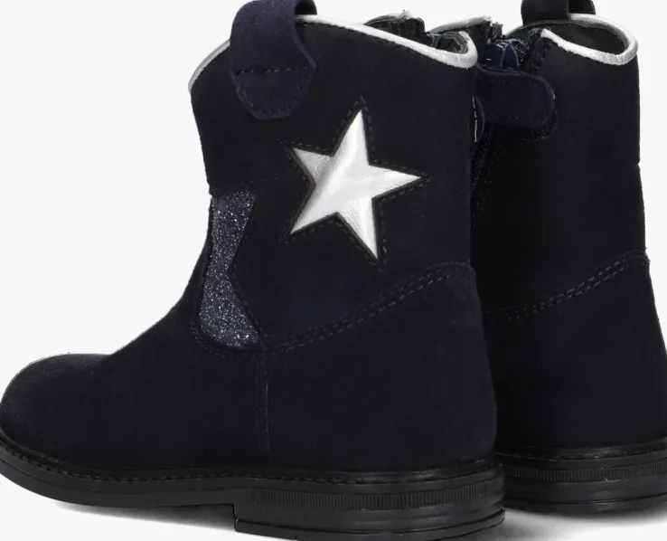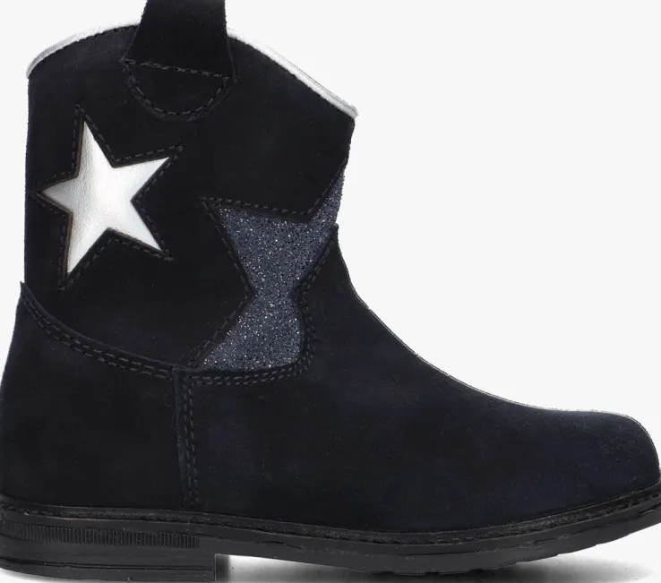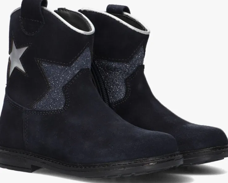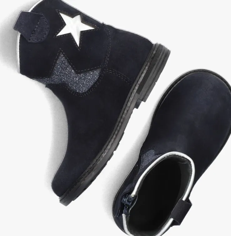 Met deze blauwe enkellaarzen van PINOCCHIO ben jij helemaal on-trend! Dit model heeft een bovenwerk van hoogwaardig suède met fraai stikwerk en de schacht is voorzien van een zilverkleurige ster en een halve ster met glitters voor een echte meid! Dit model heeft cowboy accenten, zoals de afgeronde schacht en de suède aantreklus. Je trekt dit model razendsnel aan dankzij de ritssluiting aan de binnenzijde. De laars is leer gevoerd en het uitneembare voetbed zorgt voor extra comfort, terwijl de rubberen zool zorgt voor een goede grip. De schachthoogte van 12 centimeter geeft deze laarzen een speelse uitstraling. Combineer ze met een stoere jeans en een oversized trui voor een casual look, of draag ze onder een jurkje voor een girly touch. Met dit model ben jij klaar voor elke gelegenheid!