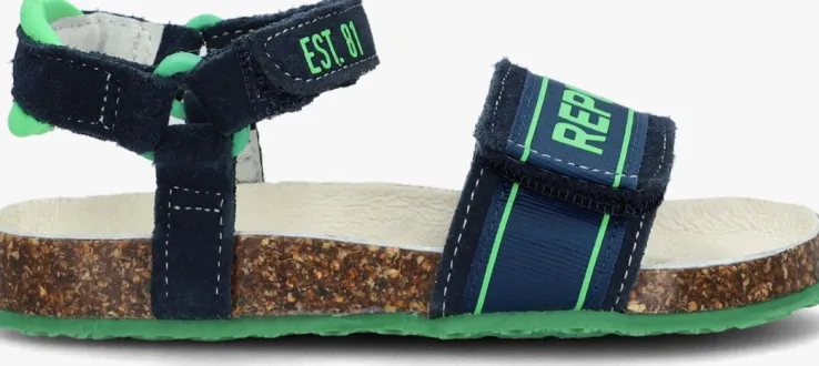 Deze stoere blauwesandalen met groene accenten BIRKY JR BOY komen uit de collectie van het merk Replay. De banden zijn uitgevoerd in blauwsuède met groene merkopdrukken op de voorvoet en wreef. Het zachte neopreen hielkussentje in combinatie met de leren voering en het fijne voetbed zorgen voor veel comfort. De zool heeft een kurken tussenzool wat zorgt voor veel demping en een rubberen loopzool met gripvast profiel. Door middel van de klittenbandsluitingen trek je ‘m gemakkelijk aan en uit en pas je de sandaal perfect aan naar de voet.