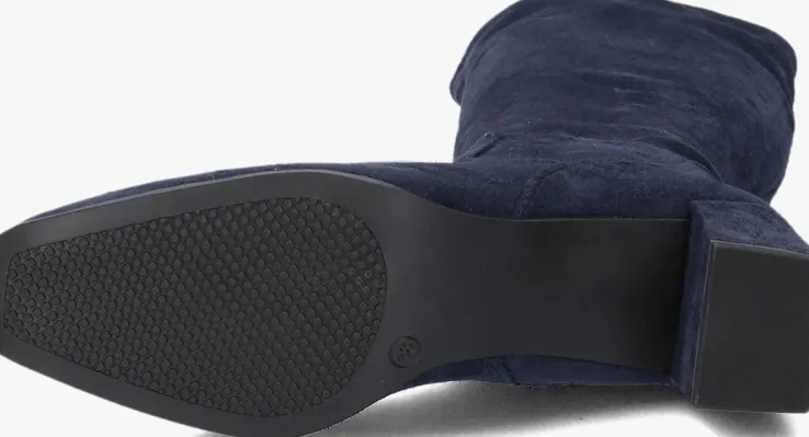 Lange stretchlaars voor dames van het merk Stefano Lauran. Deze lange laars met rechte neus is uitgevoerd in blauw suède. De flexibele schacht heeft een aan de binnenzijde een rits om het aan- en uittrekken te versoepelen. De binnenkant is uitgevoerd in leer en een stevig contrefort draagt bij aan het loopgemak. De rubberen zool heeft een medium profiel en de hak meet circa 5 cm.