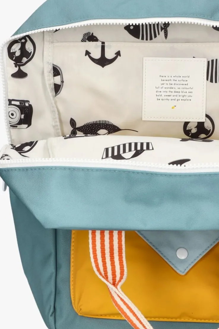Ga stijlvol op pad met de BACKPACK LARGE van Sticky Lemon. Deze blauwe rugtas is perfect voor avontuurlijke herfstwandelingen of een gezellige middag in het park. De buitenkant is gemaakt van gerecyclede PET flessen, terwijl de binnenkant van textiel zorgt voor een comfortabele draagervaring. Combineer deze tas met een warme, gebreide trui en een stoere jeans voor een trendy look. De tas is speciaal ontworpen voor meisjes die houden van een vleugje kleur in hun outfit. Of je nu naar school gaat of een dagje uit, deze rugtas biedt genoeg ruimte voor al je essentials. Laat je creativiteit de vrije loop en maak van elke dag een avontuur!