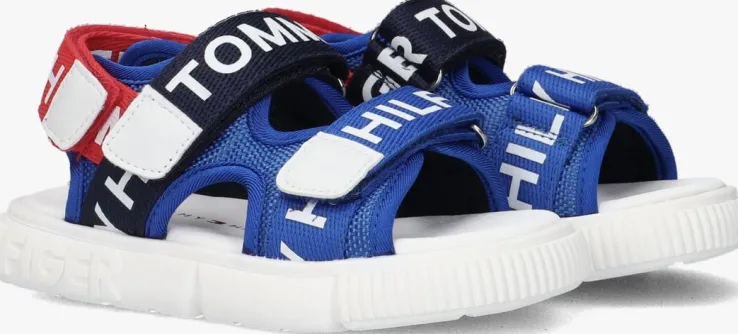 Met een stoere en stevige sandaal ben jij klaar voor alle fijne dagen buiten. Dit model 32899 komt uit de collectie van het merk TOMMY HILFIGER en heeft een stoere look dankzij de grove banden en opvallende zool. Het bovenwerk is uitgevoerd in blauw textiel in combinatie met bandenin de kleuren rooden zwart met een klittenbandsluiting.Op de banden zijn witte, oversized merkopdrukken te vinden. Het binnenwerk heeft een voering van mesh en een voetbed van leatherlook. De loopzool heeft een groot merkopdruk aan de achterkant en is gemaakt van rubber, is flexibel en voorzien vanchunkyvormen wat de stoere look benadrukt. Hetgripvasteprofiel zorgt voor een stevige grip.