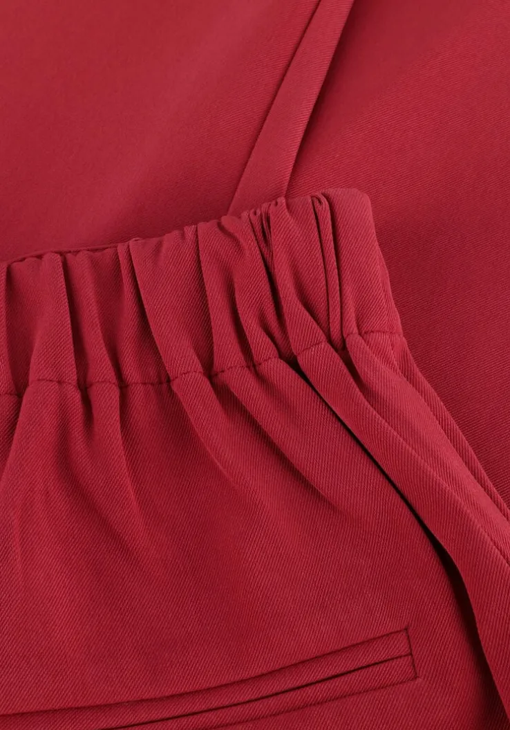Ontdek de PANTS SOLANGE van YDENCE, een stijlvolle bordeaux kleurige pantalon die je garderobe een frisse boost geeft. Deze broek is perfect voor dames die houden van een elegante en moderne uitstraling. Combineer met een witte blouse voor een chique kantoorlook of draag met een casual T-shirt voor een ontspannen dagje uit. De rijke rode kleur zorgt ervoor dat je opvalt, terwijl de comfortabele pasvorm je de hele dag door laat stralen. Of je nu een zakelijke meeting hebt of een lunch met vriendinnen, met de PANTS SOLANGE ben je altijd stijlvol en zelfverzekerd gekleed.