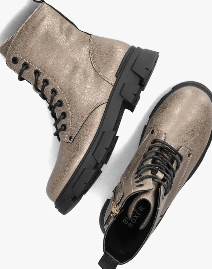 Deze bronskleurige veterboots van BULLBOXER zijn perfect voor stoere meiden die houden van een trendy look. Met de AAF504F6S ben je helemaal on-trend! Het bovenwerk bestaat uit leer en heeft zwarte accenten. Je trekt ze razendsnel aan dankzij de ritssluiting aan de binnenzijde en de voering bestaat uit textiel met een vast voetbed van leatherlook. Combineer deze veterboots met een stoere jeans en een oversized trui voor een casual en fashionable outfit. Of draag ze onder een jurkje met een leren jasje voor een edgy twist. Met deze boots kun je eindeloos combineren en creëer je keer op keer een unieke stijl. De rubberen zool met chunky vormgeving maakt dit model nog stoerder. Laat je creativiteit de vrije loop en maak een statement met deze must-have schoenen!