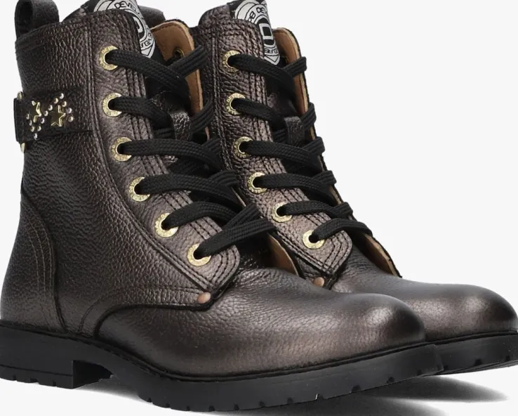 Maak kennis met de 44366 veterboots voor meisjes. Deze bronskleurige leren boots zijn perfect voor avontuurlijke dagen in het park of een middagje bij familie. De ronde neus en de schachthoogte van 13 cm zorgen voor een comfortabele pasvorm. De goudkleurige veterringen, sterretjes op de zijkant neon roze textiel label op de tong geven een leuk detail, aan deze kleurige laarzen. Dankzij de handige rits trek je ze makkelijk aan en uit. De rubberen zool biedt extra grip, ideaal voor actieve meiden. Combineer deze stoere boots met een leuke jeans of een schattig jurkje voor een trendy look. De binnenkant van leer zorgt voor extra comfort, zodat je de hele dag door kunt genieten van stijl en gemak.