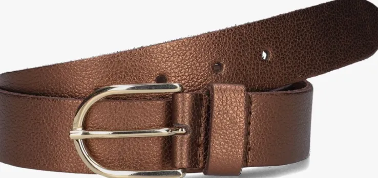 Deze koperkleurige riem 30911 van ELVY is gemaakt van gestructureerd leer en heeft een mooie glans. De breedte is 3 centimeter en is in lengte verstelbaar door de gespsluiting. Maak je outfit compleet met deze accessoire of geef ‘m kado!