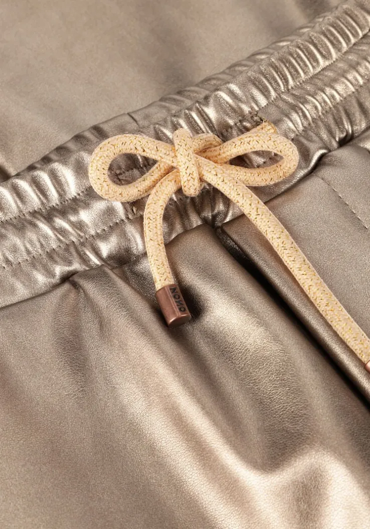 Laat je innerlijke fashionista stralen met de SUNA COATED FLARED PANTS van NONO. Deze bronskleurige flared broek is perfect voor meisjes die houden van een trendy en comfortabele look. Ideaal voor een dagje shoppen met vriendinnen of een gezellige familiebijeenkomst. Combineer met een leuke blouse of een stoer T-shirt en je bent klaar om te gaan. De gecoate stof geeft een extra touch aan je outfit, terwijl de flared pijpen zorgen voor een speelse en modieuze uitstraling. Voeg een paar sneakers of laarsjes toe en je look is compleet. Met deze broek ben je altijd stijlvol en zelfverzekerd.