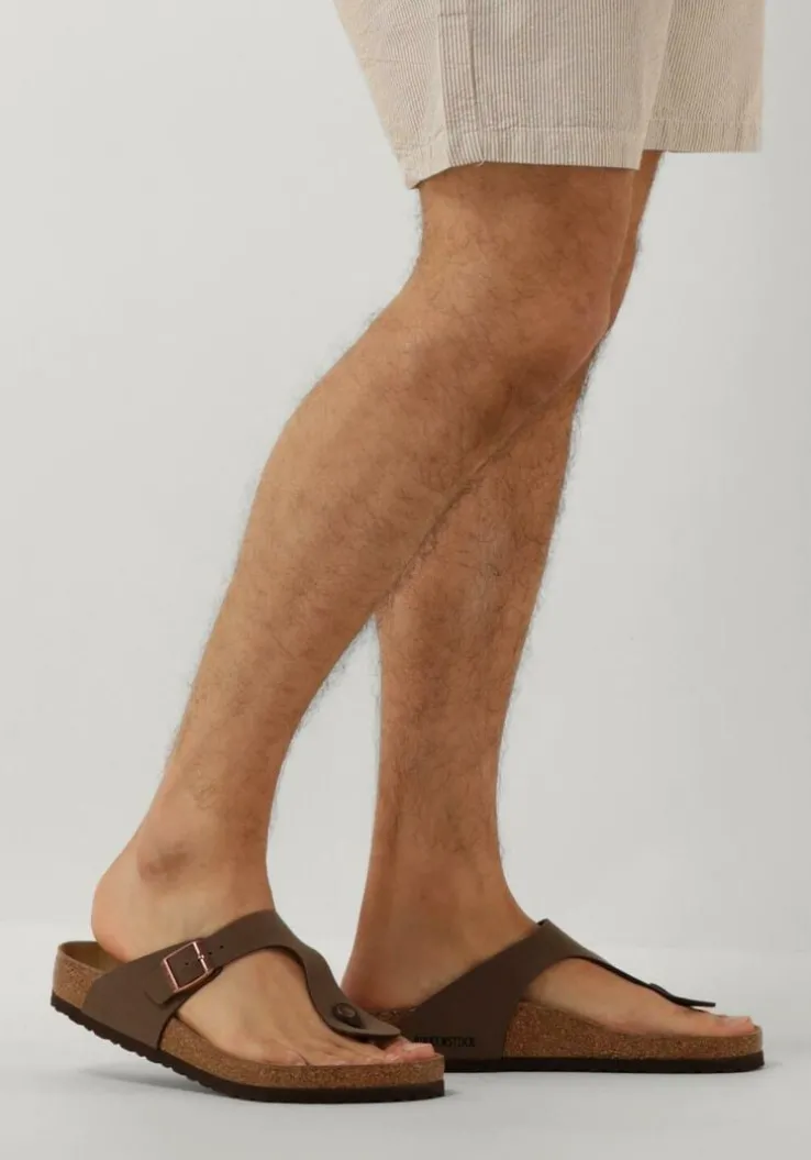 Dezebruine GIZEH HERENslipper van het merk Birkenstock is geïnspireerd op de kurken slipper en geheel vervaardigd van het bijzonder lichte en zeer flexibele EVA-materiaal. Deze leren slipper issterk en slijtvast en heeft een anatomisch gevormd voetbed, watzorgt voor een fijn draagcomfort. De kunststof gespheeft een merkopdruk en is verstelbaar voor iedere voet. De rubberen zool heeft een grof profiel met merkopdrukken voor een goede grip.