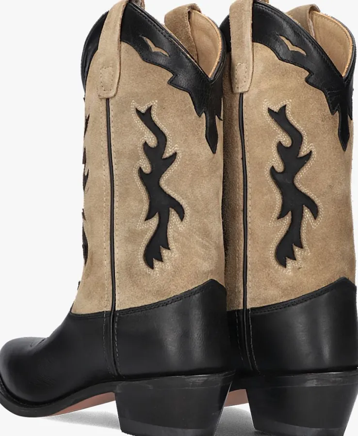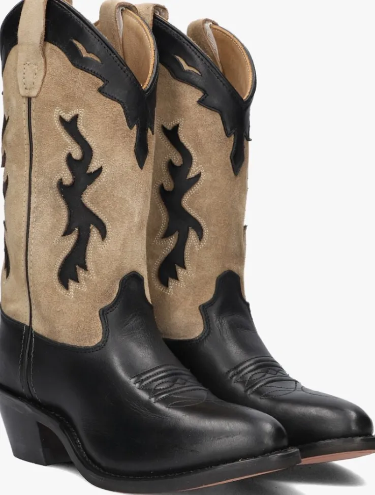 Stap in de wereld van city western met de BROOKLYN cowboylaarzen van BOOTSTOCK. Deze zwarte laarzen zijn perfect voor meisjes die houden van een trendy en stoere look. Met hun ronde neus en blokhak straal je zelfvertrouwen uit. De buitenkant is gemaakt van leer met een schacht van bruin suède met een zwart vlammenpatroon en details. De binnenkant is ook volledig van leer voor optimaal comfort. Het uitneembare voetbed zorgt voor extra gemak. De rubberen zool biedt goede grip, zodat je vol vertrouwen de stad kunt verkennen. Combineer deze cowboylaarzen met een denim short en een oversized blouse voor een fashionable en edgy outfit!