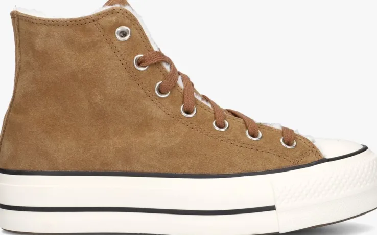Ontdek de perfecte mix van stijl en comfort met de CHUCK TAYLOR ALL STAR LIFT HI sneakers. Deze hoge sneakers in een warme bruine suède uitvoering geven elke outfit een trendy touch. De binnenkant is gevoerd met heerlijk zacht faux fur, ideaal voor een wandeling door het park of een dagje shoppen in de stad. De ronde neus en stevige rubberen zool zorgen voor een comfortabele pasvorm. Combineer ze moeiteloos met een casual jeans of een stijlvolle rok voor een eigentijdse look. Met de vetersluiting pas je ze perfect aan jouw voet aan. Een must-have voor elke dame die houdt van mode en comfort.