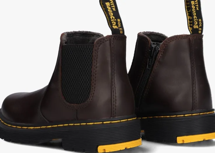 Je bent het coolste kind op het schoolplein met deze leren mini chelsea bootsvan Dr.Martens!Deze donkerbruine bootsBANZAI/SHENZI CHELSEA KIDS zijn gemaakt van lichtgewicht volnerfleer en heeft een grofgeweven elastische inzet en een ristsluiting.De comfortabele én hippeboots hebben de kenmerkende Dr. Martens accenten zoals het klassieke leer, het gele stiksel, de gegroefde zoolrand ende oversized hiellus. Dit model heeft een textielen voeringen een vastvoetbed.De schoen is gemaakt om lang mee te gaan en heeft daarom de welbekende Goodyear-zool met het iconische luchtkussen in de hak. Deze AirWair™ zool is olie- en vetbestendigen biedt een goede schuur- en slipweerstand. Draag ze onder een jeans of ga de uitdaging aan en match ze onder een rokje of jurkje. *Maatadvies: schoenen van Dr. Martens moeten eerst goed ingelopen worden, maar daarna wil je nooit meer zonder!