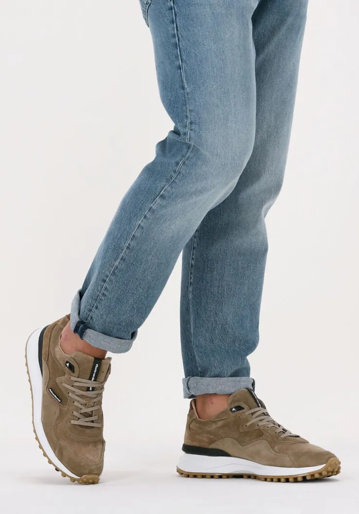 Helemaal van deze tijd en voorzien van een nieuwe, lichtgewicht zool is deze spiksplinternieuwe sneaker SFM-10082-02 uit de collectievan hetmerk Floris van Bommel. Deze sportieve bruine runner heeft een bovenwerk van suèdemet panelen van gestanst suède en is voorzien vanzwarte rubberen merklabels op de tong en zijkant van de sneaker. Op de bruine leren hielkap bevindt zich eenreliëf merkopdruk en de zwarte hielstabilizer is voorzien van het Floris van Bommel logo. Het binnenwerkis uitgevoerd in leer en heeft een uitneembaar voetbed met ademende ventilatiegaatjes onder de voorvoet. De lichtgewicht NOPPI-zool met flink veel volume zorgt voor maximale grip door de ontelbare noppen als loopvlak. Combineer hem onder een stoere jeans voor een sportieve, trendy look.
