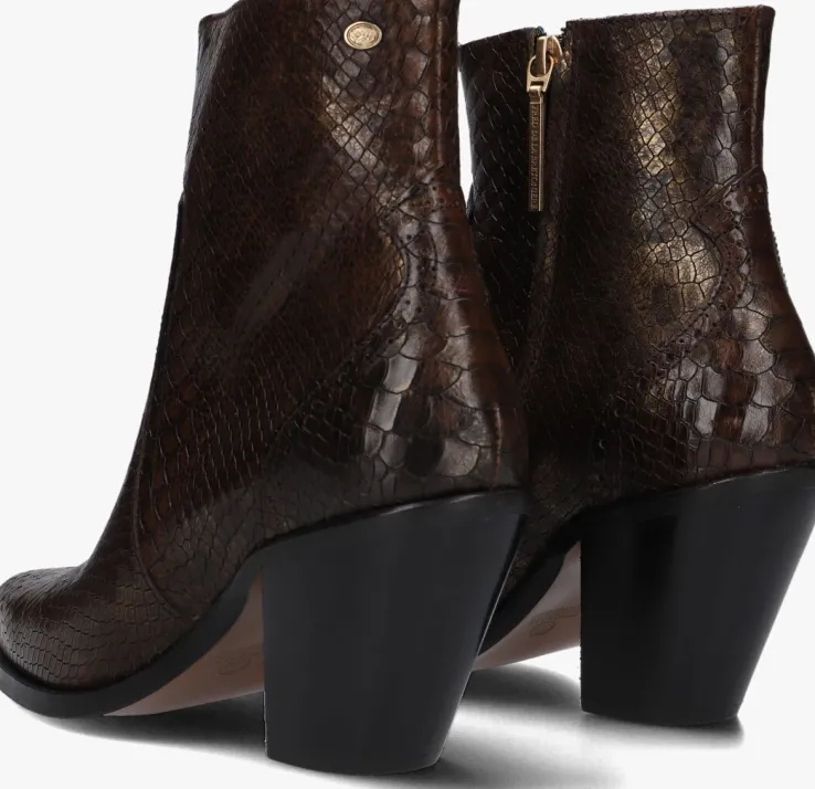 De kunstenaar FRED DE LA BRETONIERE begon in de jaren ’60 te experimenteren met ontwerpen van schoenen en tassen voor de vrouw, dat pakte goed uit. Hij vond zijn passie en zijn producten werden snel opgepikt door consumenten en grote warenhuizen. Tot op de dag van vandaag weet dit kunstzinnige merk ons telkens weer te verrassen met klassieke, eigentijdse en iconische designs. Ook dit mooie enkellaarsje BLAIRE ANKLE BOOT is gemaakt metpassie, vakmanschap énvan de beste materialen.De buitenkant van dit laarsje is gemaakt van donkergroen leer met fijn reptielstructuur en heeft een elegant ontwerp. Het binnenwerk is tevens gemaakt van leer en voorzien van een vast voetbed. Je trekt ‘m gemakkelijk aan en uit dankzij de goudkleurige ritssluiting aan de binnenzijde. Aan de schacht prijkt op subtiele wijze een metalen merklabel. De hak is ruim 8centimeter hoog en door zijn blokvorm zorgt hij voor voldoende stabiliteit en de schachthoogte is 14centimeter, gemeten bij maat 38.De zool is gemaakt van rubber en heeft eenglad, maar fijn profiel.Een ideaal laarsjevoor elke gelegenheid en onder talloze outfits te combineren!