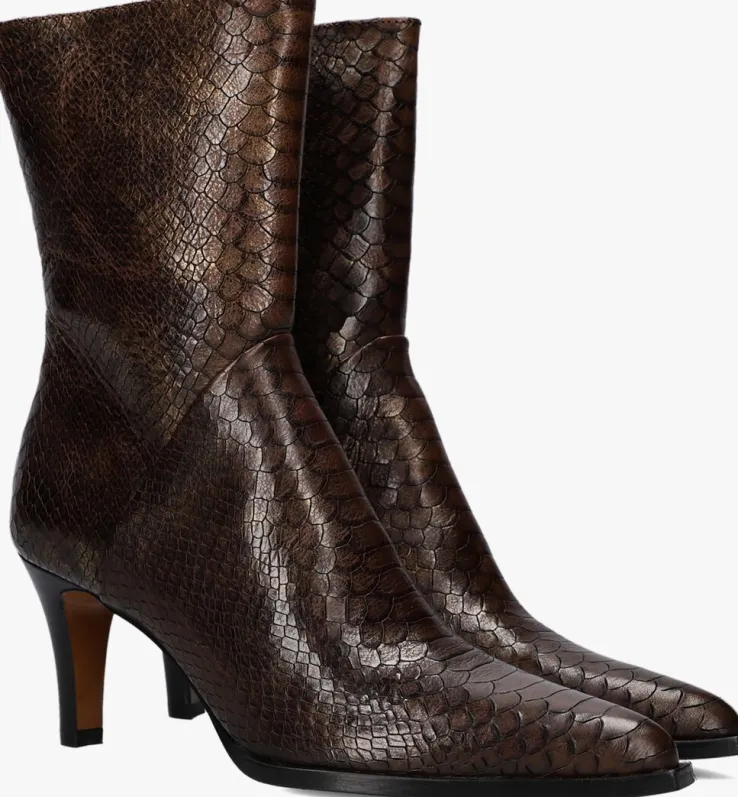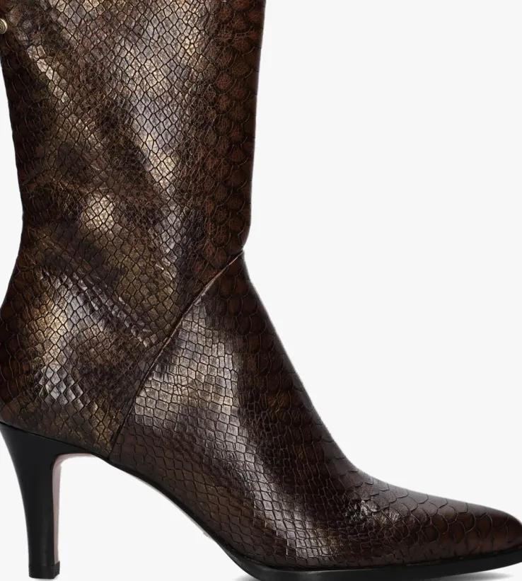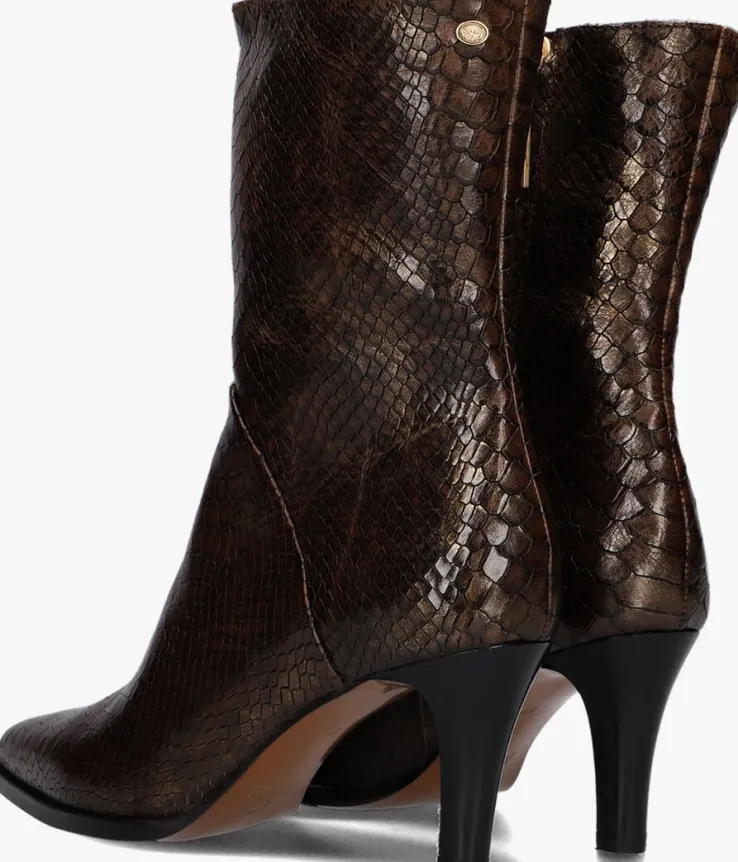 Deze donkergroene enkellaarzen DAWN komen uit de collectie van het merk FRED DE LA BRETONIERE. Het bovenwerk bestaat uit slangenleer en heeft een naar binnen gestikte naad op de wreef. Met de puntige neus, de smalle vormgeving, de beklede naaldhak en de goudkleurige merkstud op de hiel geven deze schoenen jouw outfit een stijlvolle boost. De voering bestaat uit zacht leer en het dempende voetbed is niet uitneembaar. Met een schachthoogte van 20 centimeter en een handige ritssluiting zijn ze gemakkelijk aan en uit te trekken. Combineer deze enkellaarzen met een trendy jurkje voor een chique look, of draag ze met een jeans voor een stoere uitstraling. DAWN is jouw perfecte keuze voor elke gelegenheid!