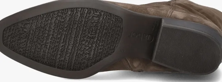 Stoer, vrouwelijk & comfortabel! Dat is deze bruine, halflange laars 672.1uit de Comfort collectie van het merk Gabor. Comfort schoenen hebben meer volume bij de tenen en bij de bal van de voet en bieden voor iedere voet de noodzakelijke ruimte. Dit model is uitgevoerd in zacht taupekleurig suède met een V-uitsnijding aan de voorzijde van de schacht en een aantreklus aan de zijkant. De westernhak,de spitse neus en de stiksels op de schacht zorgen voor die trendy city western look! Het laarsje heefteenbinnenvoeringvan zacht suèdelook met een uitneembaar voetbed en met de handige ritssluiting aan de binnenkant trek je ‘m eenvoudig aan en uit. Dit model heeft een normale G-wijdte en de rubberen zool met slijtvaste loopzool biedt grip en een hoog loopcomfort. Destabiele hak heeft een hoogte van 4 centimeteren de schachthoogte is 24centimeter, gemeten bij maat 38. Match zeonder jouw lievelingsbroek of -jurk en je bent klaar voor een nieuwe, mooie dag!