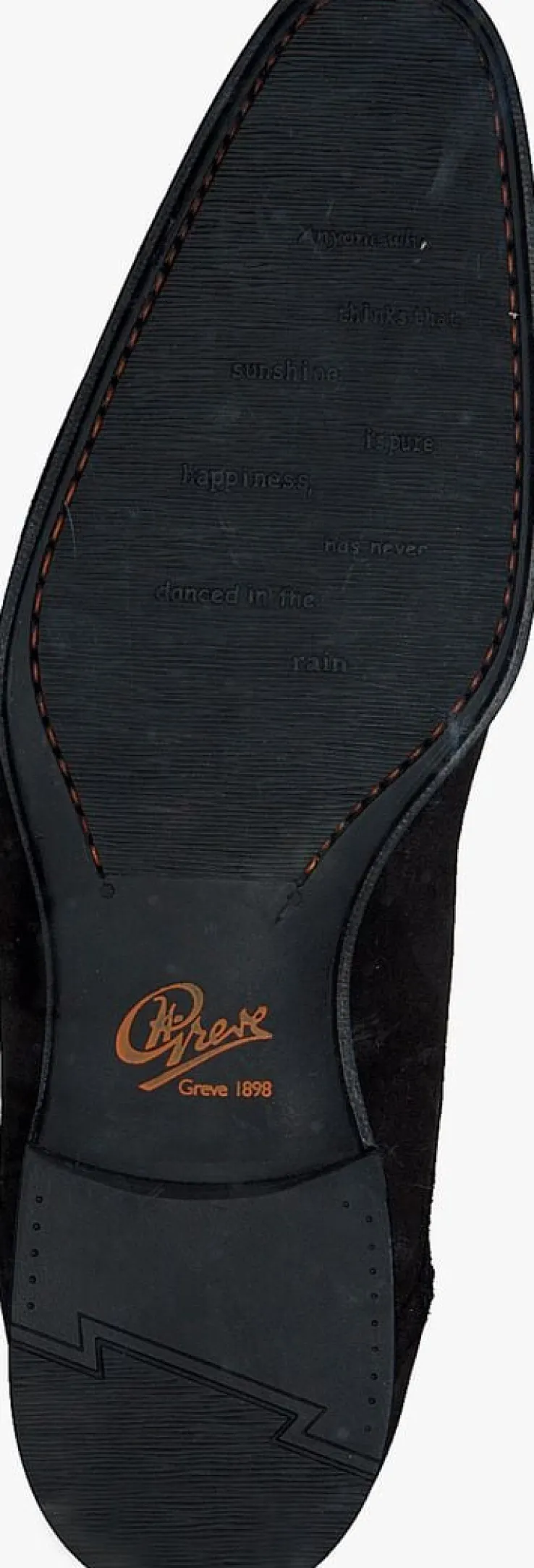 Deze prachtige hoge nette schoenkomt uit de collectie van het Nederlandse merk Greve. Dit superieure merk vervaardigt sinds het jaar 1898stijlvolle, modieuze schoenen voor de modebewuste man met de allerhoogste kwaliteit en een perfecte pasvorm.Deze donkerbruine schoen RIBOLLA 1540 van hoogwaardig kalfssuèdeheeft een glad voorpand, dubbele stiksels op de veterklep en een dubbele hielinzet met bruine stikseldecoratie. De kalfslederenbinnenvoeringblijft ook na intensief dragen mooi en comfortabelen iseen goede afvoer van transpiratievocht. Daarnaast zorgtdeextrafoambrugin het vaste leren voetbedvoor een aangename zachte ondersteuning. Het bovenwerkkan worden afgesloten met een vetersluiting met ronde veter van gewaxt katoen en geeft de schoen een stijlvolle finishingtouch. Dit model is gemaakt volgensde BLAKE-maakwijze, waarbij het bovenwerk over de binnenzool wordt getrokken en vastgezet. De rubberen zool is voorzien van een geïntegreerde extra rubberen loopzool, wat het loopcomfort verder optimaliseert en wordt daarnaast ook nog ‘van binnen doorgenaaid’ met een stikdraad door de zool. Deze maakwijze heeft geen voetbed onder de voorvoet voor extra flexibiliteit en een beter ademende werking van de zool. Het profiel in de loopzool en hak zorgt voor een goede grip. De elegantevorm wordt geaccentueerd door het extra smalle geleng van de schoen (de overgangvan de zool naar de hak) en zorgt bovendien voor extra flexibiliteit.