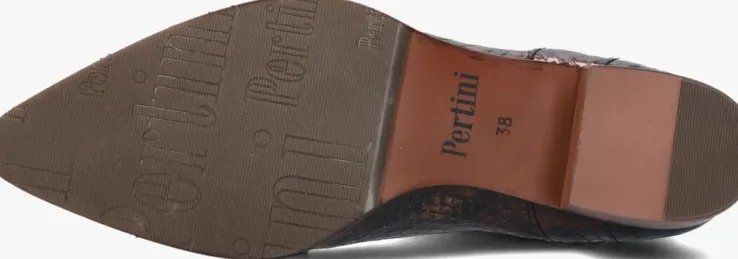Het Spaanse merk Pertini is al sinds 1980 gespecialiseerd in het vervaardigen van hoogwaardige, unieke schoenen geïnspireerd op schoenencollecties uit de jaren ‘40 en ‘50. De combinatie van klassieke patronen met de nieuwste mode zorgt ervoor dat je met Pertini altijd fashionable bent! De schoenen zijn handgemaakt en zitten erg comfortabel. Deze bruine enkellaars 30961 is uitgevoerd in leer en heeft een lakleren slangenprint met vlamaccenten in de kleur blauw. Dankzij de elastische zijpanelen trek je ’m gemakkelijk aan en uit en geeft het de laars een finishing touch! De voering is gemaakt van leer en heeft een vast voetbed. De hak heeft een hoogte van ruim 4 centimeter en de zool is afgewerkt met een rubber ribbeltjesprofiel voor voldoende grip. Je kunt ‘m combineren bij talloze outfits, waar ga jij voor?