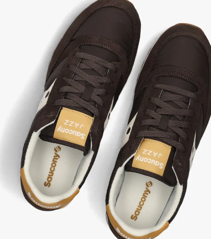 Stap in stijl met de groene Jazz Original M lage sneakers van het merk Saucony. Deze trendy schoenen zijn perfect voor een casual dagje uit of een relaxte wandeling in het park. De sneaker heeft een bovenwerk van bruin canvas en suède. Opvallend zijn de witte leren panelen aan de zijkant, de gele leren hielcap en het merklogo op de hielcap en tong. Het binnenwerk is uitgevoerd in textiel met een uitneembaar voetbed met een hielinzet van leer voor extra comfort aan de hiel. De rubberen zool heeft een stevig profiel voor superveel grip op iedere ondergrond.